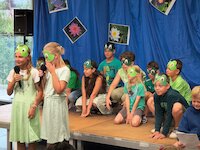 Siebzig aufmerksame Augenpärchen folgten am heutigen Samstag dem Theaterstück. 35 Schüler haben gedacht, dass man nicht für die Schule, sondern für das Leben lernt. Und alle, ob Schüler, Eltern, Verwandte oder Lehrer, mussten lächeln, als der Storch den "zu zähen" Lehrer links liegen ließ.