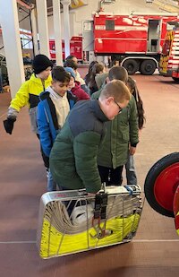 Unsere Drittklässler gingen am Ende mit vielen Eindrücken, jeder Menge Begeisterung und wahrscheinlich noch mehr Wissen nach Hause – ganz ohne Arbeitsblatt, dafür mit echtem „Feuerwehr-Feeling“.