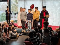 Auch das geneigte Kinderpublikum lauschte anschließend dem Chor der Lehrerstimm(ch)en und Nikolaus lächelte milde und stellte jedem Kind ein Geschenk in Aussicht. Denn eines wussten wir spätestens durch Emre, Kacper und Adel. Es ist weihnachtlich geworden und weiße Engel schreiten auf den verschneiten Straßen.