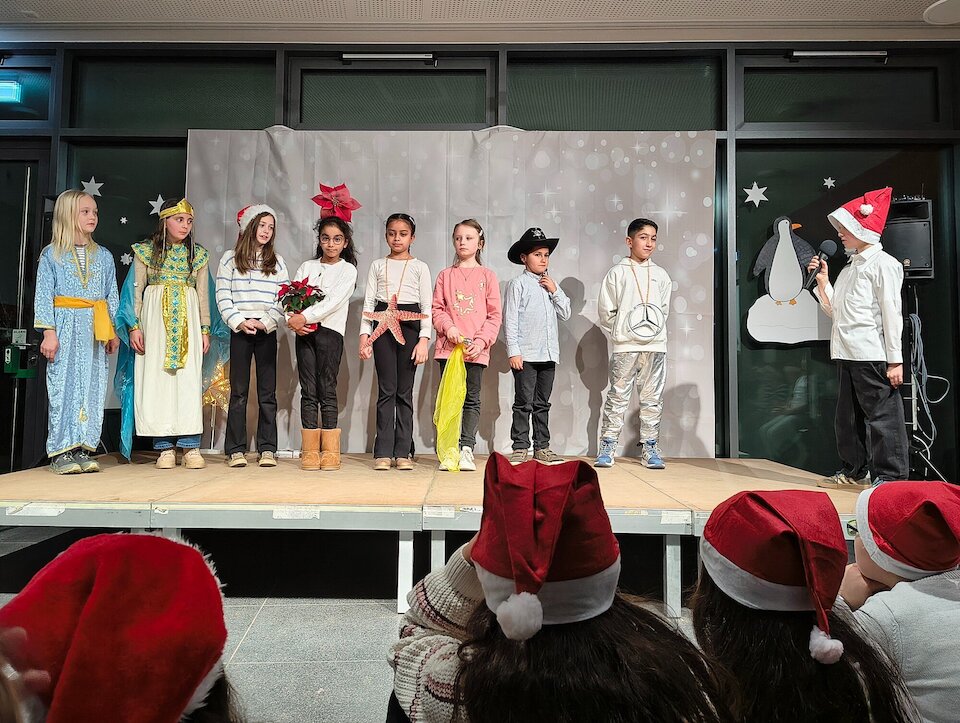 So oder ähnlich muss es Josef und Maria auch ergangen sein, als sie sich nach Betlehem aufmachten. Ein Aufbruch in ein altbekanntes Umfeld. Betlehem - da war doch was? "War Licht und Glockenklang, Geschenke unterm Tannenbaum, Gedichte und Gesang." Zuerst war es jedoch einmal eine Castingshow, wer denn den Stern für Betlehem spielen möge. Die Kandidaten waren unterschiedlich, hatten jedoch eines gemeinsam: Sie waren selbstverliebt, egoistisch und hatten die Botschaft des Festes nicht verstanden. Als ein kleiner Stern ihnen erklärte, worum es bei diesem Fest eigentlich ginge, war sofort klar, dass es nur einen wahren Stern von Betlehem geben konnte! Was Weihnachten für uns bedeutet, verdeutlichte die Klasse 4a: Dankbarkeit. Sehr anrührend, ehrlich und liebevoll interpretiert, zeigten sie den Gästen eindringlich auf, wie wertvoll Rücksichtnahme, Verantwortungsbewusstsein und Dankbarkeit sind. Getoppt wurde diese Auftritt noch durch einen eigens kreierten Song als Dankeschön an alle Lehrer und Eltern dieser Schule. Wenn jemandem jetzt die Botschaft des bevorstehenden Festes unklar war, konnte nur noch eines helfen: Gedichte! Von modern bis klassisch war alles dabei.