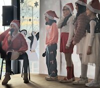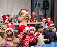 Eine wunderbare Zeit im Kreise der besten Freunde war auch unsere diesjährige Weihnachtsfeier. Der Lichtertanz der ersten Klassen ließ schnell bei Eltern, Kindern und Lehrern Wohligkeit und Heimeligkeit aufkommen. Der Besuch beim Weihnachtsmann offenbarte uns ein vielfältiges Potpourri an Wünschen. Dass dieser im anschließend den Schneemann-Rock 'n' Roll tanzte und das Publikum durch den Cup-Song zum Mitmachen animiert wurde, rundeten die Festivität der ersten und zweiten Klassen genauso ab wie die musikalischen Darbietungen von Skady und Ida (beide Klasse 1b) auf der Blockflöte sowie Ivana (ebenfalls 1b) am E-Piano. Das Schlusslied Lichterkinder erinnerte ein wenig an Take Thats "Never forget", in dem es sinngemäß heißt "Never forget where you`ve come here from".